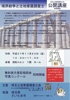 11月20日さいたま市の浦和駅前の浦和コルソにて公開講座が開かれます。以下は埼玉土地家屋調査士会中原副会長の言葉です。