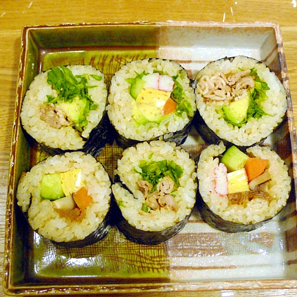 数種の太巻きを作り、いつものように切って食べました。