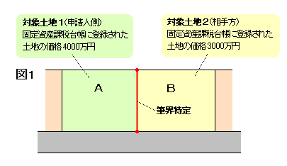 例えば、2筆の土地の1筆界を特定する申請においては、まず基礎となる額