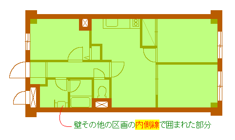 区分建物の床面積(専有部分)は、壁その他の区画の内側線で囲