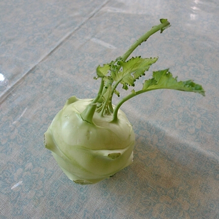 先日の畑作業でコールラビという野菜を初めて収穫しました。