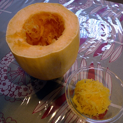 先日初めて丸ごとそうめんかぼちゃをもらいました。