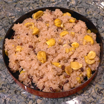 義母が栗入りのお赤飯を作ってくれました。