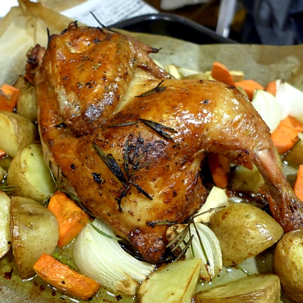 クリスマスディナー風に、鶏肉の半身をオーブンで焼いて