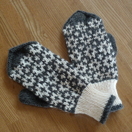 先日いつの間にか余り糸で冬用の手袋が編み上がっていました。
